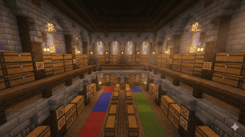 In survival mode, a build should solve a real problem. Storage systems reduce friction. Farms stabilize resources. Centralized bases simplify movement and planning.