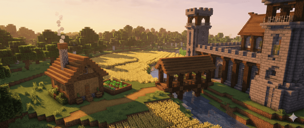 Survival worlds improve when builds are chosen intentionally. Bases anchor progress. Farms reduce friction. Large projects add identity. Aesthetic choices work best when they support function.