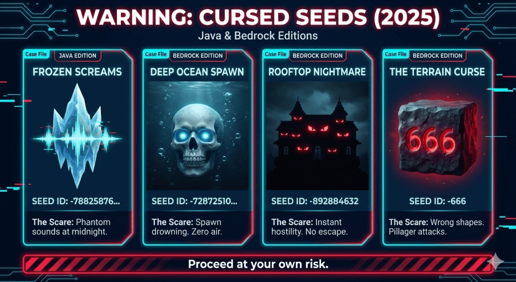 Here are the creepiest Minecraft scary seeds for 2025 each one packed with eerie terrain, strange events, and unsettling atmospheres.